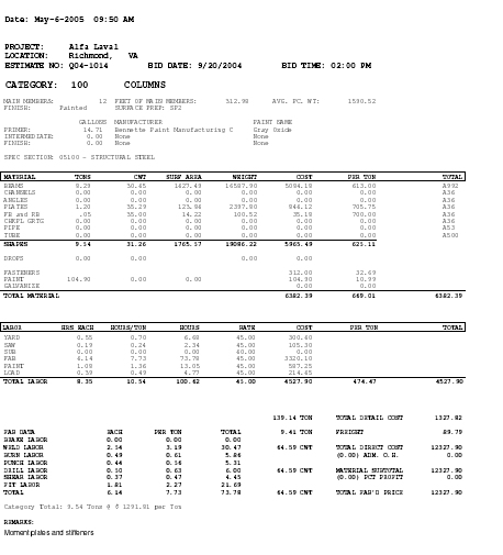labor summary showing Hrs. Each, Hrs./Ton, Hours,