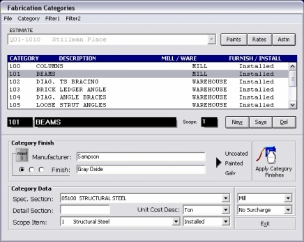 Fabrication categories are the building blocks of your estimate. Prior to doing a takeoff, you
